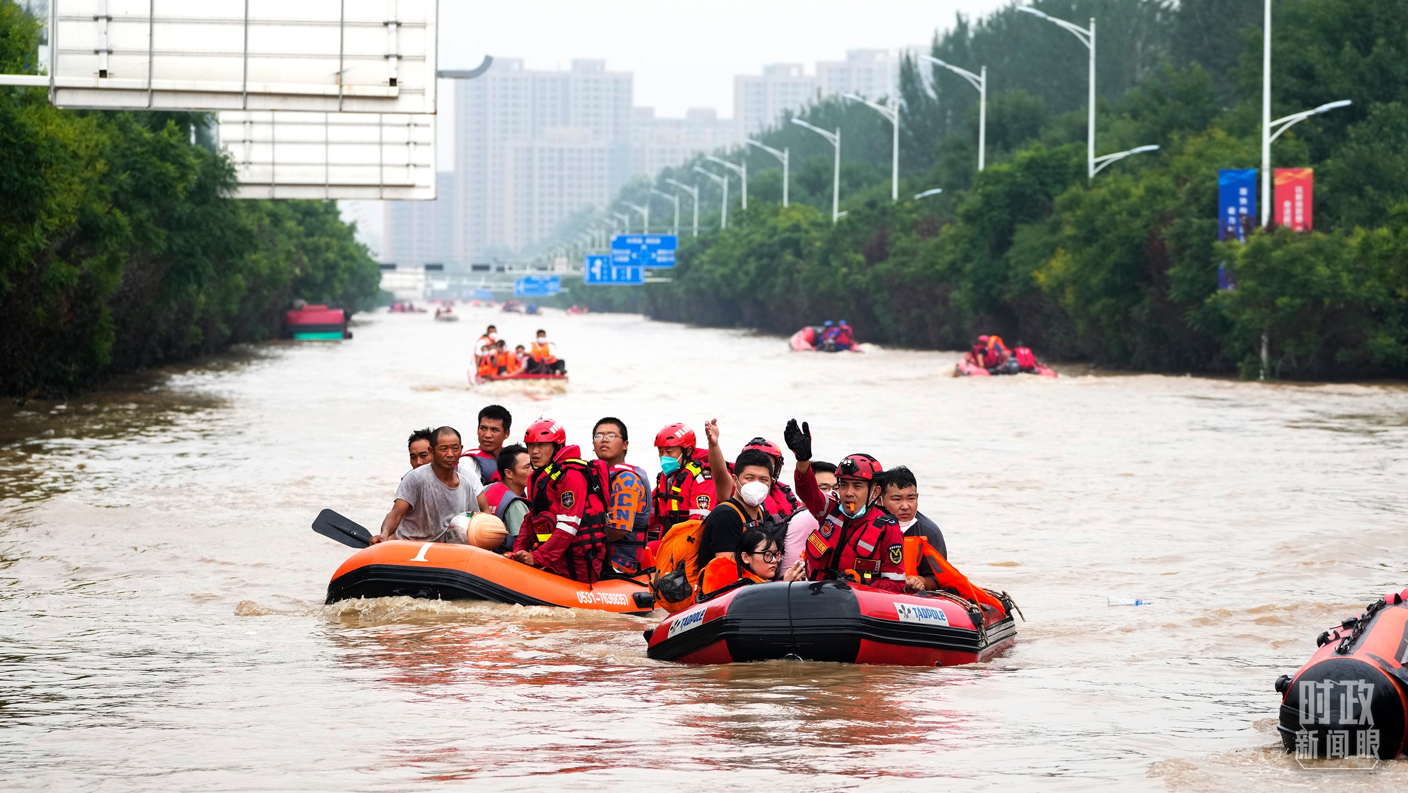△ 8月初,河北涿州居民在洪水中乘坐橡皮艇撤離。(圖/視覺中國(guó))