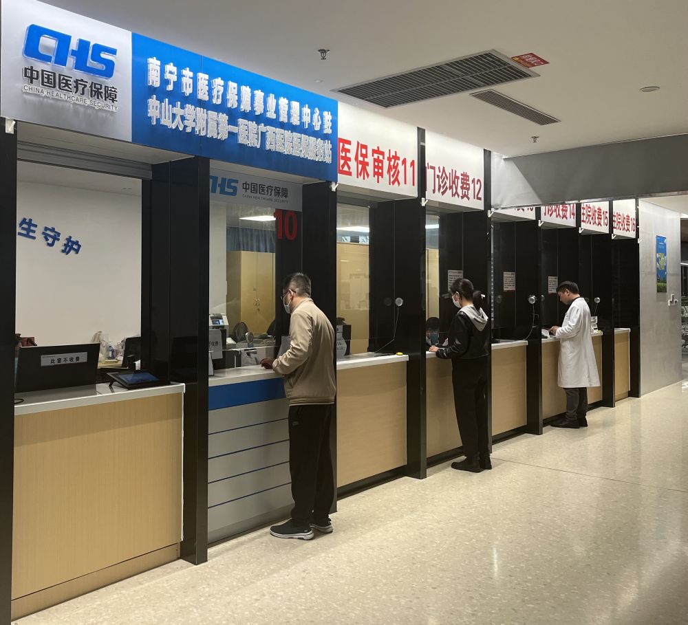 群眾在廣西壯族自治區(qū)南寧市醫(yī)療保障事業(yè)管理中心駐中山大學(xué)附屬第一醫(yī)院廣西醫(yī)院醫(yī)保服務(wù)站咨詢。(新華社記者 徐海濤攝)
