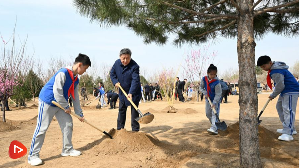 4月3日,習(xí)近平等黨和國家領(lǐng)導(dǎo)人來到北京市豐臺(tái)區(qū)永定河畔,同干部群眾一起參加義務(wù)植樹。