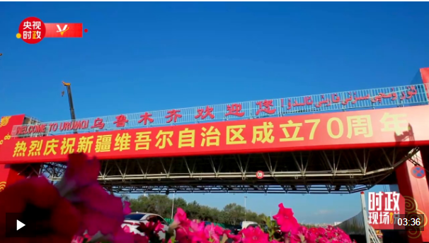 中共中央總書(shū)記、國(guó)家主席、中央軍委主席習(xí)近平率中央代表團(tuán)23日下午乘專機(jī)抵達(dá)烏魯木齊,出席新疆維吾爾自治區(qū)成立70周年慶祝活動(dòng)。14時(shí)20分許,習(xí)近平乘坐的專機(jī)在天山國(guó)際機(jī)場(chǎng)降落,等候在停機(jī)坪的新疆各族各界群眾熱烈歡呼。習(xí)近平走下舷梯時(shí),少先隊(duì)員獻(xiàn)上鮮花。各族群眾代表身著民族服飾,載歌載舞,歡迎總書(shū)記的到來(lái),表達(dá)對(duì)總書(shū)記的衷心祝福。