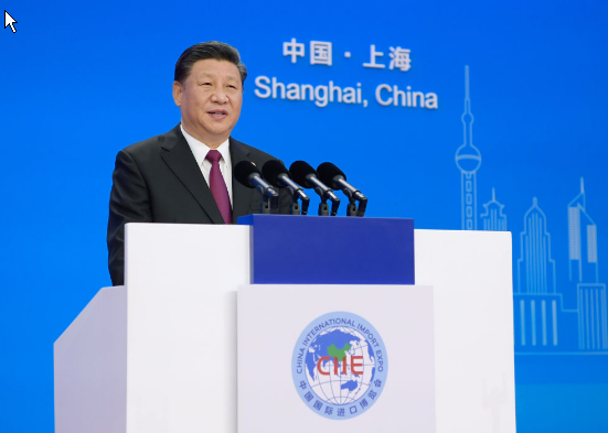 2018年11月5日,首屆中國國際進口博覽會在上海開幕。習近平出席開幕式并發(fā)表題為《共建創(chuàng)新包容的開放型世界經(jīng)濟》的主旨演講。新華社記者 李學仁 攝