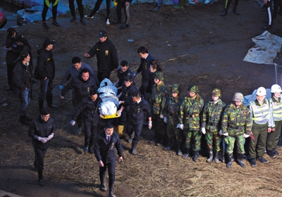 昨日,救援人員將搜尋到的乘客遺體搬上岸。當(dāng)日,搜救人員在事故現(xiàn)場(chǎng)附近陸續(xù)尋獲5名罹難者遺體。仍有3名旅客下落不明。新華社記者 金立旺 攝