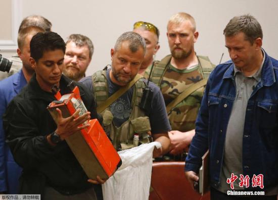 當(dāng)?shù)貢r間2014年7月22日,頓涅茨克,“頓涅茨克人民共和國”官員向馬來西亞調(diào)查人員移交馬航MH17航班客機(jī)黑匣子。原標(biāo)題:馬航MH17一個黑匣子數(shù)據(jù)成功導(dǎo)出 無人為……
