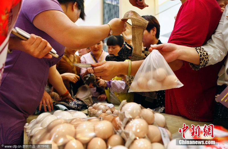 5月25日下午3時(shí)許,陜西省西安市鳳城五路一商場大廳里,很多人排起了長隊(duì),每個(gè)人手中都拿著雞蛋。走近一問才知道,她們參加的是一個(gè)叫“雞蛋換‘胸’……