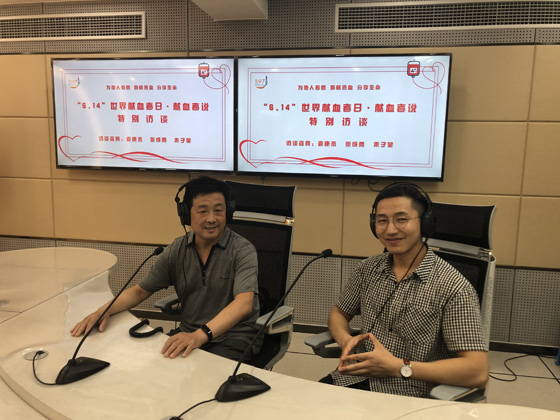 這三位嘉賓的身份可不一般,袁康杰和張成勇是全國無常獻血奉獻獎金獎獲得者,朱子昊則是全國無償獻血志愿服務獎二星級獎獲得者。三位獻血者在一個小時的節(jié)目里與聽眾分享了自己的獻血故事,通過不同的視角,詮釋了無償獻血的奉獻精神,用自己的親身經(jīng)歷向聽眾訴說了無償獻血的大愛情懷。