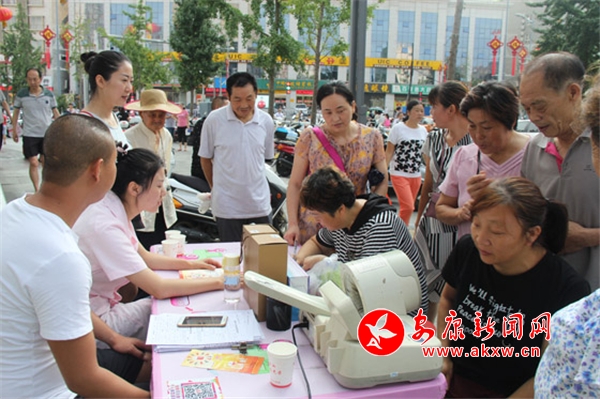 此時,超市門前擠滿了前來購物的老年人,不少人看見獻血車,便跑來咨詢,但他們當中大多數(shù)人因為超過獻血法定年齡,無法參與獻血,只能遺憾離開。隨著過往路人越來越多,血站工作人員拿著宣傳彩頁,不斷地鼓勵大家加入到獻血隊伍中來。站長胡章學也專門來到了采血現(xiàn)場,和工作人員一同做起了動員工作,耐心地為路人講解獻血知識,還為等待獻血的愛心人士講述獻血前中后的注意事項,叮囑獻血者要多喝水,多注意休息,胡站長親切的笑容,感染著在場的每一個人。