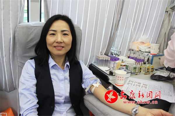 安康農(nóng)商銀行黨群工作部總經(jīng)理李家蘭,作為此次活動(dòng)的組織者,前期積極協(xié)調(diào)各方,活動(dòng)期間,李經(jīng)理一直在采血車上為大家服務(wù)。直到中午休息時(shí)間,她才坐了下來(lái)捐血了200ml血液,這也是她第三次獻(xiàn)血。李經(jīng)理說(shuō):“組織這個(gè)活動(dòng)是想告訴身邊的人,無(wú)償獻(xiàn)血無(wú)損健康,只是需要一點(diǎn)勇氣,如果大家都參與進(jìn)來(lái),帶動(dòng)更多的人,就能在全社會(huì)營(yíng)造出人人支持無(wú)償獻(xiàn)血的氛圍,我們今后也將積極組織參與更多獻(xiàn)血活動(dòng)。”