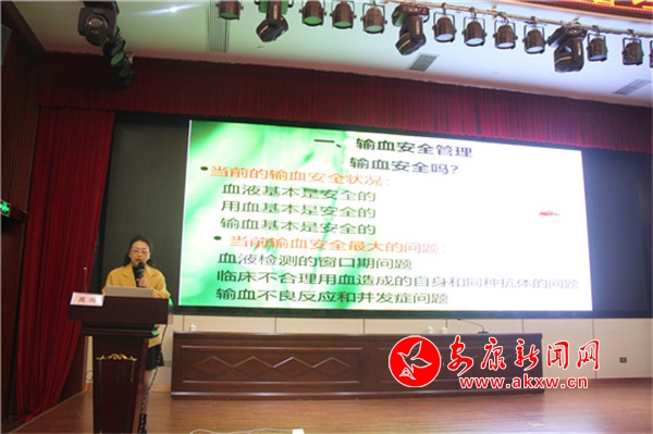 本次培訓(xùn)特別邀請了西安交通大學第一附屬醫(yī)院輸血科主任王寶燕教授,她結(jié)合自身多年工作經(jīng)驗,就《臨床輸血流程管理和臨床案例分析》進行了深入細致的講解。安康市中心醫(yī)院輸血科禹梅老師從血液管理、成分血的輸注、評估等方面做了《臨床輸血實踐與控制》的精彩闡述。安康市中心血站副站長李宏就近年來全市臨床輸血質(zhì)量管理專項督查中存在的問題進行了一一剖析,通報了各臨床用血單位無償獻血募集指標完成的情況。
