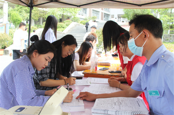 現(xiàn)場(chǎng)除了積極獻(xiàn)血的同學(xué),參與服務(wù)的志愿者們也非常熱情,他們細(xì)心地指導(dǎo)同學(xué)填寫體檢表,為獻(xiàn)血者倒水,發(fā)放紀(jì)念品,向前來(lái)咨詢的同學(xué)宣傳無(wú)償獻(xiàn)血,不少人也在輪換休息后走上獻(xiàn)血車伸出手臂勇敢獻(xiàn)血。