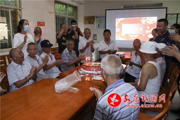 活動(dòng)現(xiàn)場(chǎng),他們?yōu)槔先藗兯腿ヅD、礦泉水、牙膏等生活用品,宣講防疫小知識(shí),并為11位老人集體慶生,為他們精心準(zhǔn)備了生日蛋糕和禮品。老人們圍桌而坐,一起唱生日歌,現(xiàn)場(chǎng)其樂(lè)融融。