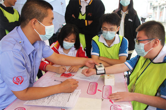 前來獻(xiàn)血的學(xué)生里有不少人還不滿十八歲,因?yàn)椴粔蚍ǘǐI(xiàn)血年齡,大家都帶著些遺憾不肯離開,血站工作人員見狀把大家組織在一起,給他們發(fā)放了無償獻(xiàn)血宣傳冊(cè),鼓勵(lì)他們先了解相關(guān)知識(shí),等年齡夠了再來。“只要有愛心,什么時(shí)候來都不遲!”工作人員笑瞇瞇地鼓勵(lì)到。
