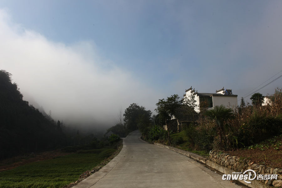 廣佛鎮(zhèn)鐵爐村,路邊的徽派民居在大巴山的云霧里靈動(dòng)飄逸。