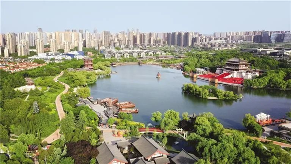 西安大唐芙蓉園(4月25日攝,無人機照片)。新華社記者 劉瀟攝