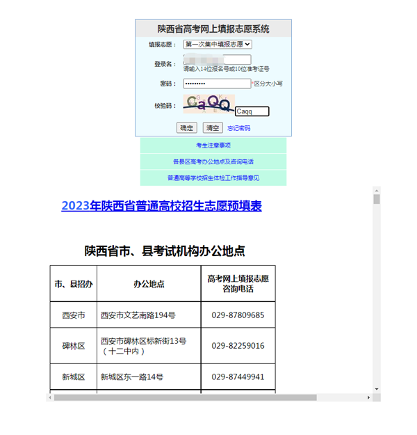 1.考生憑網(wǎng)上報(bào)名時(shí)所用報(bào)名號(hào)(14位)或準(zhǔn)考證號(hào)(10位)及密碼登錄網(wǎng)上填報(bào)志愿系統(tǒng),網(wǎng)址為陜西省教育考試院門(mén)戶網(wǎng)站(https://www.sneea.cn)或陜西招生考試信息網(wǎng)(https://www.sneac.com)。