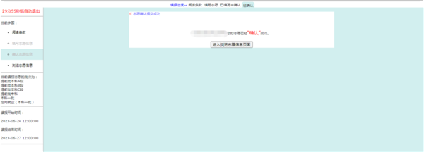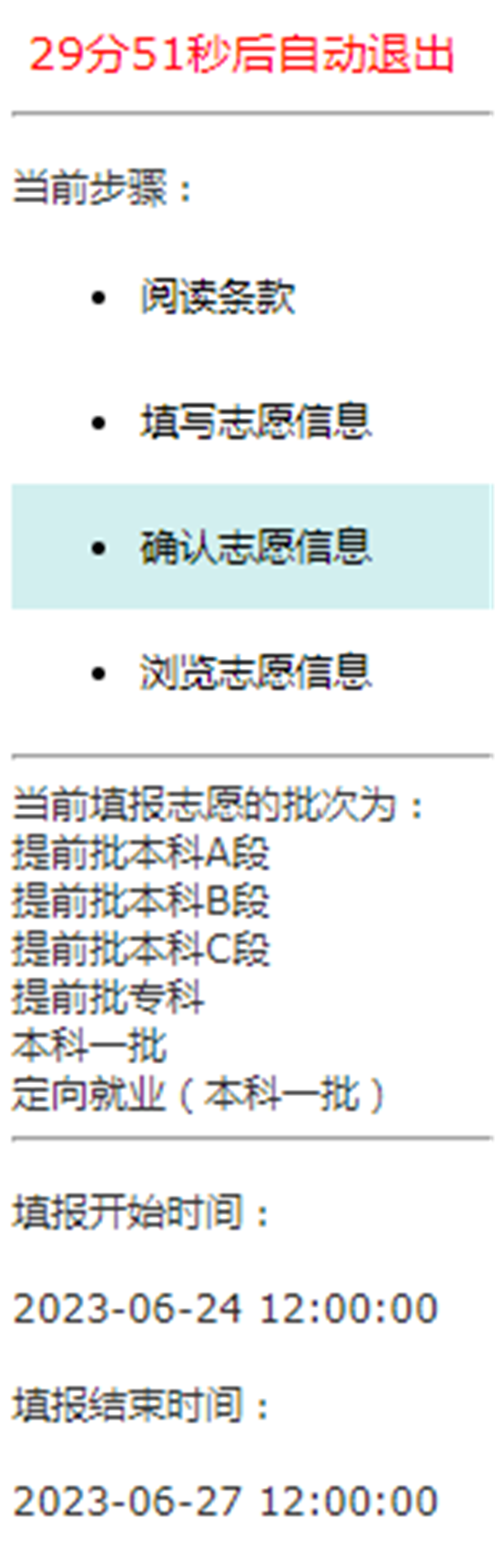 全部志愿信息輸入完畢后,必須點(diǎn)擊“提交”按鈕,否則服務(wù)器無(wú)法接收到志愿信息。全部志愿確定無(wú)誤后,必須點(diǎn)擊“確認(rèn)”按鈕。在點(diǎn)擊“確認(rèn)”按鈕之前,可以任意修改所填志愿。