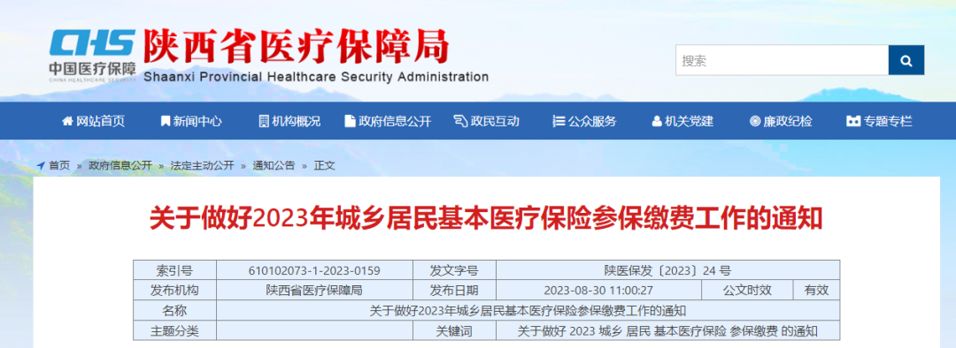 8月30日,陜西省醫(yī)療保障局網站發(fā)布了關于做好2023年城鄉(xiāng)居民基本醫(yī)療保險參保繳費工作的通知。