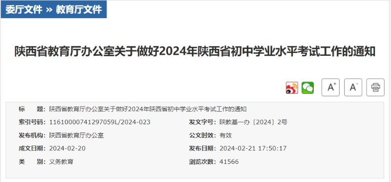 2月21日記者從陜西省教育廳獲悉,2024年陜西省初中學業(yè)水平考試工作相關安排出爐,對考試對象、考試科目、各科目試卷滿分值及考試時長等做了明確。突出學生綜合素質的考查,并通過優(yōu)化命題形式,引導減少死記硬背和“機械刷題”。任何單位與個人不得根據(jù)初中學業(yè)水平考試成績給學校和學生排隊或以任何形式公布名次。