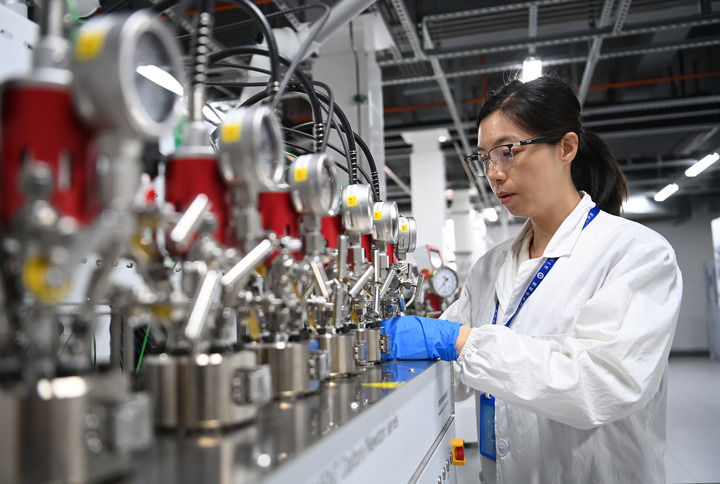 工作人員在榆林中科潔凈能源創(chuàng)新研究院工藝放大平臺(tái)實(shí)驗(yàn)室制備催化劑小試樣品(2024年3月6日攝)。新華社記者 鄒競(jìng)一 攝