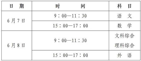 高考統(tǒng)考各科目考試時(shí)間mNm安康新聞網(wǎng)