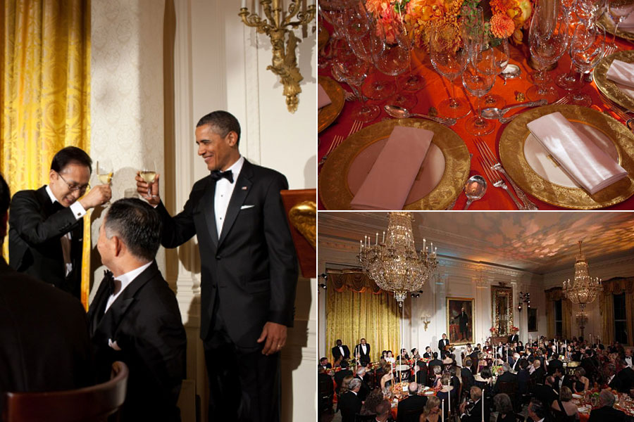 2011年款待時(shí)任韓國(guó)總統(tǒng)李明博國(guó)宴:結(jié)合韓國(guó)傳統(tǒng)風(fēng)味