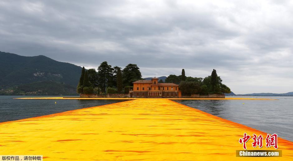 當(dāng)?shù)貢r間2016年6月16日,意大利伊賽奧湖,保加利亞出生的藝術(shù)家克里斯托在湖上設(shè)計出一個“漂浮的碼頭”。這個項(xiàng)目由20萬塊浮箱搭建成一條3公里的“橋”,通往湖心島上。xfa安康新聞網(wǎng)