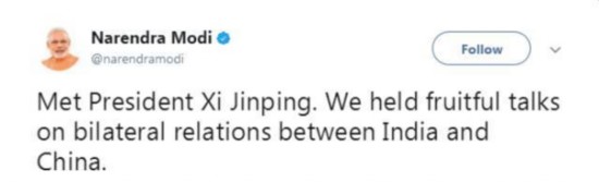 “見(jiàn)了習(xí)近平主席。我們就印中雙邊關(guān)系舉行了富有成果的會(huì)談!