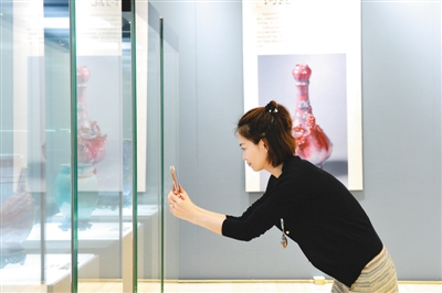 圖為一位觀眾在拍攝國家級非物質(zhì)文化遺產(chǎn)代表性傳承人任星航的鈞瓷作品。iuN安康新聞網(wǎng)