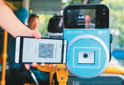 | 民眾乘坐交通工具出行時使用手機支付。 |