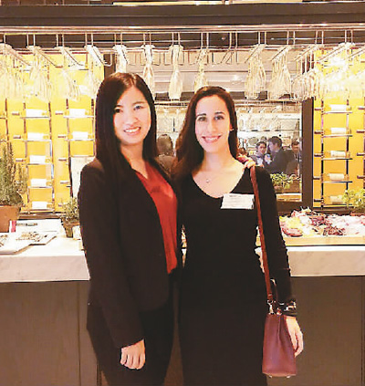 | 就讀于美國康奈爾大學酒店管理專業(yè)的張悅芊(左)積極參加校內(nèi)外的活動。圖為她在學院校友會活動上的留影。 |