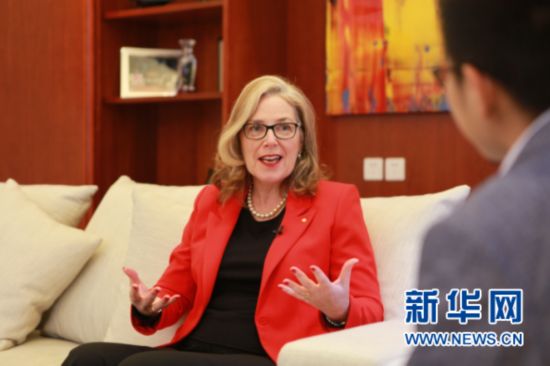 2017年12月5日,澳大利亞駐華大使安思捷女士在北京就中澳關(guān)系問(wèn)題接受新華網(wǎng)專訪。新華網(wǎng)發(fā) 張嘉欣攝