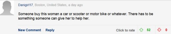 美國(guó)波士頓的網(wǎng)友danigiri17寫(xiě)道:“誰(shuí)來(lái)給她買(mǎi)輛車(chē),或者至少買(mǎi)個(gè)小摩托車(chē)之類(lèi)的?隙ㄓ腥四軌驇椭!