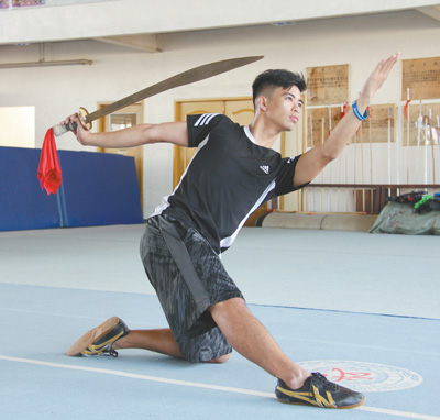 | 準(zhǔn)備參加?xùn)|南亞運(yùn)動(dòng)會(huì)的菲律賓國(guó)家武術(shù)隊(duì)隊(duì)員在進(jìn)行訓(xùn)練。本報(bào)記者 孫廣勇攝 |