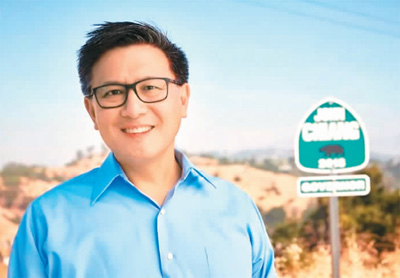 | 圖為美籍華人江俊輝競(jìng)選加州州長(zhǎng)宣傳片畫面 |