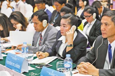 | 7月2日至3日,2018瀾滄江—湄公河合作媒體峰會(huì)在老撾首都萬(wàn)象舉行,與會(huì)代表正在傾聽(tīng)大會(huì)發(fā)言。本報(bào)記者 王斯雨攝 |