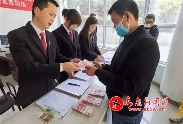 本網(wǎng)訊(通訊員 劉華渝 謝承誠) “沒打官司,沒請律師,還要回了工資,真是感謝漢濱法院!” 3月21日,漢濱區(qū)人民法院向11名農(nóng)民工發(fā)放執(zhí)行款9.77萬元,拿到拖欠工資的農(nóng)民工們激動地感激不已,并為執(zhí)行局送來一面寫有“持正義秉公執(zhí)法 為民工討薪維權(quán)”的錦旗。