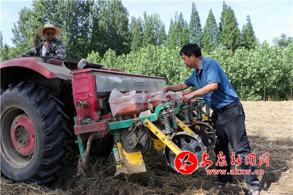 在張灘鎮(zhèn)張灘社區(qū),小麥已收割完畢,安康市伊蘭農(nóng)機農(nóng)民專業(yè)合作社正在進行玉米機械化播種。“去年用小型播種機,120畝需要5天,今年更換了大型玉米精量播種機,2天就能完成。”合作社負責人張海濤說。