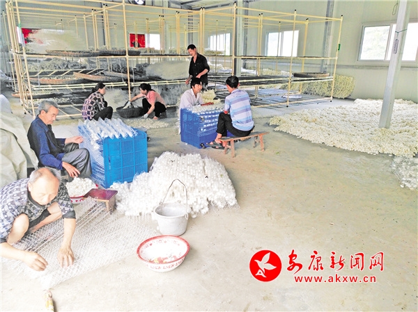 今年4月,養(yǎng)蠶工廠正式投入使用,帶動全村養(yǎng)蠶近200張,累計收入45萬余元,本村20余名脫貧勞動力在養(yǎng)蠶工廠實現(xiàn)就業(yè)。隨著養(yǎng)殖規(guī)模的擴大,養(yǎng)蠶工廠還采用收購桑葉的形式對全村30余戶外出務(wù)工人員的閑置桑園進行統(tǒng)一管護,不僅讓閑置桑園有了收益,而且極大地提振了村民發(fā)展蠶桑產(chǎn)業(yè)的信心。目前,夏蠶飼養(yǎng)近100張,較去年同期穩(wěn)步增長,秋蠶也列入了養(yǎng)殖計劃,實現(xiàn)一年三季養(yǎng)蠶目標(biāo)。