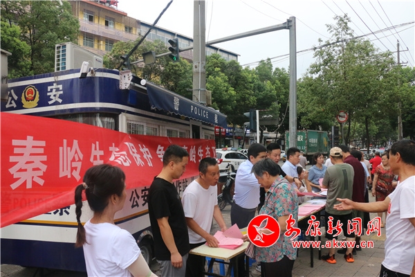 活動現(xiàn)場,工作人員通過懸掛橫幅標語、發(fā)放宣傳彩頁、現(xiàn)場講解等多種方式,向過往群眾宣傳習近平總書記生態(tài)文明思想、《陜西省秦嶺生態(tài)保護條例》、堅決抵制“五亂”行為等知識,為大家講解保護秦嶺的重要意義,引導群眾樹立“綠水青山就是金山銀山”“像保護眼睛一樣保護生態(tài)環(huán)境”“像對待生命一樣對待生態(tài)環(huán)境”的理念,強化自覺踐行綠色發(fā)展、守護青山綠水的意識,營造濃厚宣傳氛圍,號召更多群眾踴躍加入保護秦嶺生態(tài)環(huán)境的大隊伍中來。