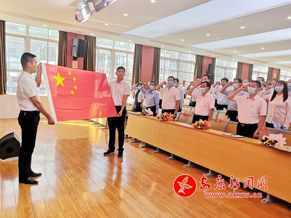 “我志愿成為一名人民教師,忠誠(chéng)黨的教育事業(yè),遵守教育法律法規(guī),履行教書(shū)育人職責(zé)……”活動(dòng)中,與會(huì)教師面向國(guó)旗宣誓,用錚錚誓言表達(dá)了“賡續(xù)百年初心,擔(dān)當(dāng)育人使命”的堅(jiān)定信念。