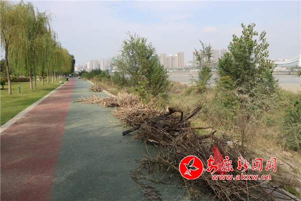 行動(dòng)中,護(hù)河員和專業(yè)施工隊(duì)員密切配合,對(duì)漢江南岸金川段、心石段、油坊段、白廟段河道護(hù)坡及岸邊的雜樹木進(jìn)行拉網(wǎng)式清理整治,工人們利用電鋸、刀等工具,將粗大雜樹木進(jìn)行切割規(guī)整,連同細(xì)小樹枝雜草一道搬至步道,然后用車統(tǒng)一運(yùn)走。據(jù)了解,截至9月23日,共清運(yùn)走雜樹木60余車,讓河岸與周邊的美景更好融為一體。