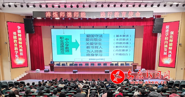 本網(wǎng)訊(通訊員 李晴)11月21日,漢濱初中高新校區(qū)邀請安康市教研室副主任、陜西省教學(xué)能手、陜西省學(xué)科帶頭人、陜西省名師工作室主持人吳萬強(qiáng)老師為全校教師進(jìn)行師德師風(fēng)專題講座。