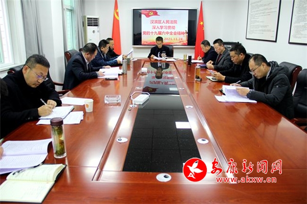 本網(wǎng)訊(通訊員 劉華渝)11月24日,漢濱區(qū)人民法院召開黨組會議,學(xué)習(xí)貫徹習(xí)近平總書記在黨的十九屆六中全會上的重要講話和全會精神。