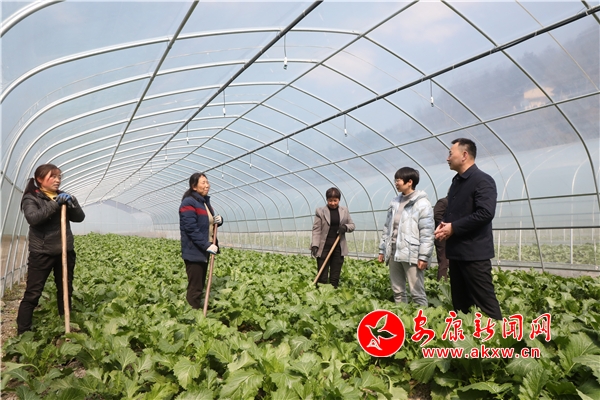 駐鄉(xiāng)村振興局紀(jì)檢監(jiān)察組干部在晏壩鎮(zhèn)蔬菜保供建設(shè)項(xiàng)目基地了解設(shè)施蔬菜種植和園區(qū)務(wù)工情況