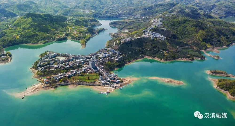 無人機(jī)視角下的漢濱區(qū)流水鎮(zhèn)湖光山色風(fēng)景如畫