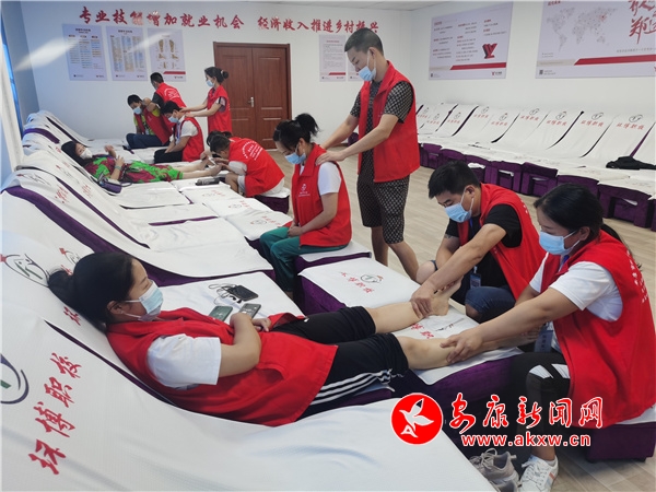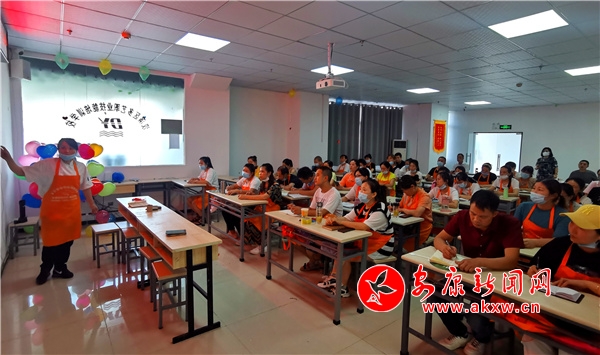 圖為:職業(yè)技能培訓(xùn)機構(gòu)正對學(xué)員進行中式面點師和中式烹調(diào)師,修腳足療,美甲化裝等進行面對面培訓(xùn)。