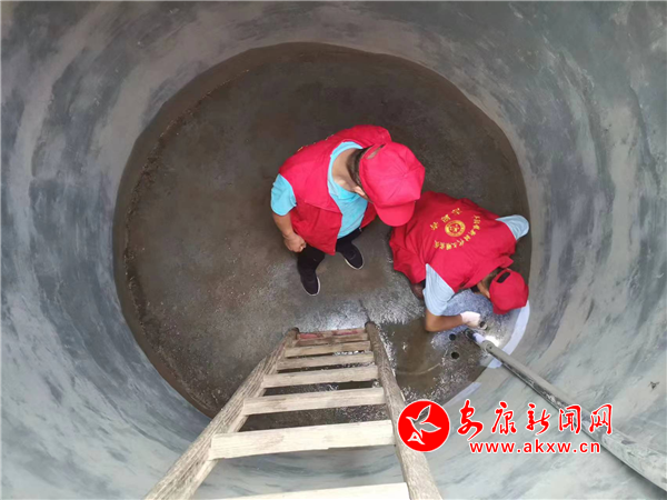 石門村志愿服務(wù)隊(duì)對(duì)人居飲水工程進(jìn)行全面排查、定期清洗水窖。該村志愿服務(wù)分隊(duì)長惠才波說,“村里留下來的大部分人都是老弱病殘弱勢人群,近期持續(xù)高溫,防汛抗旱形勢嚴(yán)峻,優(yōu)先保障群眾飲水安全,解決群眾急難愁盼問題,是我們工作職責(zé)所在,通過我們的行動(dòng),讓群眾感受到更多的幸福感,引導(dǎo)群眾參與到文明新風(fēng)創(chuàng)建中來,讓石門村更美好”。