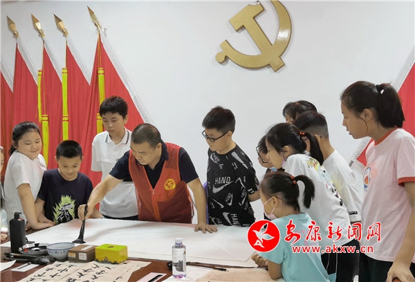 在羅軍書記不辭辛苦耐心指導(dǎo)下,不僅讓孩子們對(duì)書法有了初步了解,而且從中體驗(yàn)到了書法的妙趣,陶冶了情操,現(xiàn)場(chǎng)氣氛其樂融融。