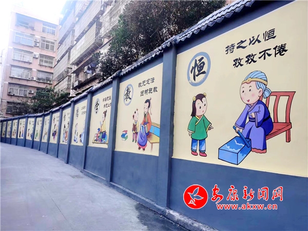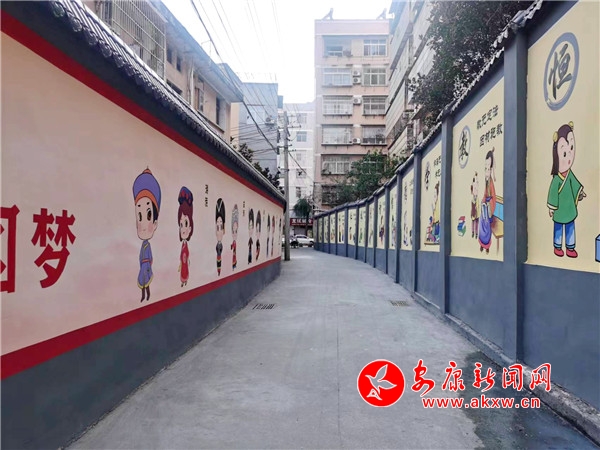在大北街社區(qū)土地樓巷,破舊的磚瓦墻被重新粉刷的干干凈凈,還設(shè)計了荷花圖,一張張臉譜將老城巷道添上了一層古樸的面紗。在東關(guān)社區(qū)潘家坑巷道,一側(cè)墻壁設(shè)計的是代表各個民族特色的彩繪,象征民族大團(tuán)結(jié),另一側(cè)墻壁設(shè)計的是孝順、勤勞、節(jié)儉等傳統(tǒng)美德,在西關(guān)社區(qū),設(shè)計的是龍舟文化……