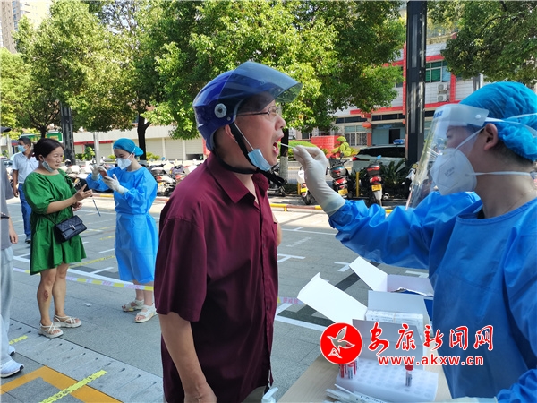 按照全市新冠肺炎疫情防控指揮部的周密部署,8月18日下午,漢濱中心城區(qū)啟動第二次全員核酸檢測工作 。圖為安火路社區(qū)居民在執(zhí)勤民警、醫(yī)務人員、社區(qū)工作者和志愿者的密切配合下,有序開展核酸檢測。(陳榮斌 攝) 4ga安康新聞網(wǎng)