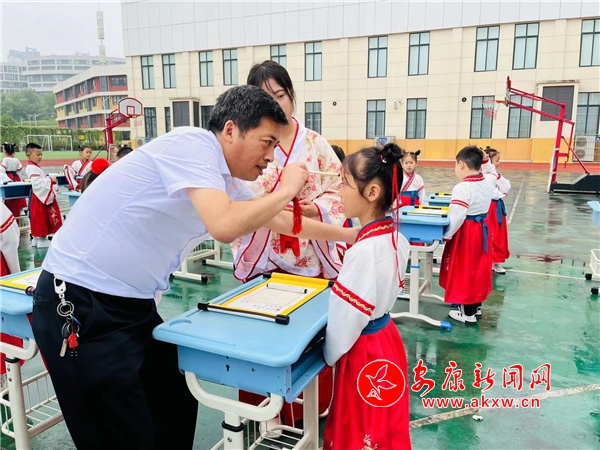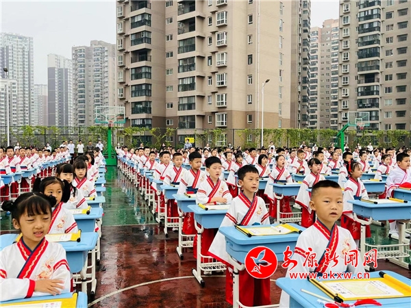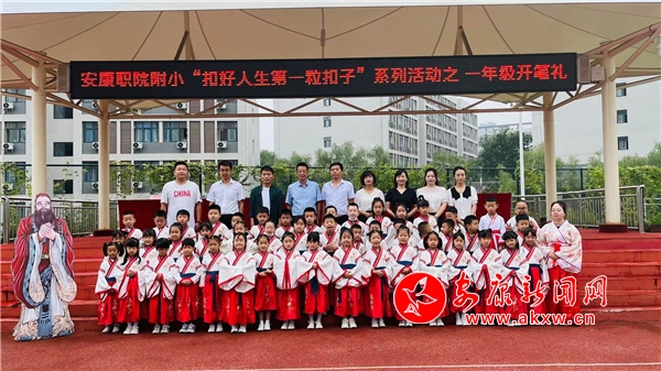9月16日,安康職業(yè)技術(shù)學(xué)院附屬小學(xué)舉行“喜迎二十大 強(qiáng)國復(fù)興有我”開筆啟智活動。一年級新生身著漢服,通過正衣冠、拜孔子、誦經(jīng)典、點(diǎn)朱啟智、擊鼓鳴志、開筆寫“人”、感恩鞠躬等環(huán)節(jié),領(lǐng)略濃郁的校園文化氛圍和優(yōu)秀傳統(tǒng)文化的魅力,莊重的儀式在學(xué)生內(nèi)心種下愛學(xué)習(xí)、敬師長的種子,助力孩子走好學(xué)習(xí)第一步。(圖文/甘立)